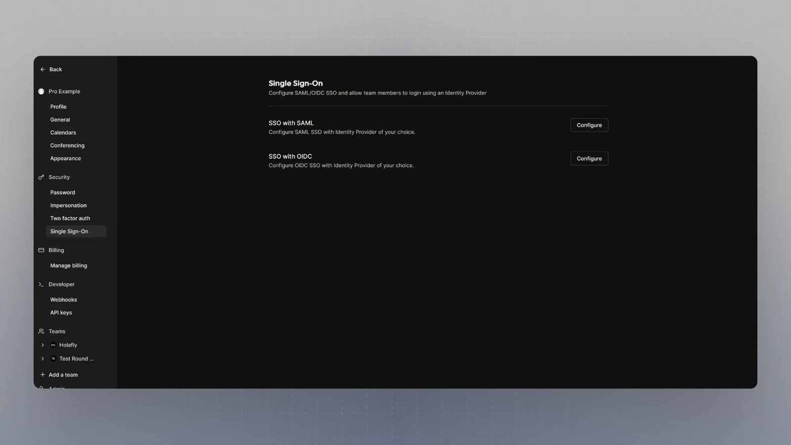9. Visit {BASE_URL}/settings/security/sso and you should see something like this: